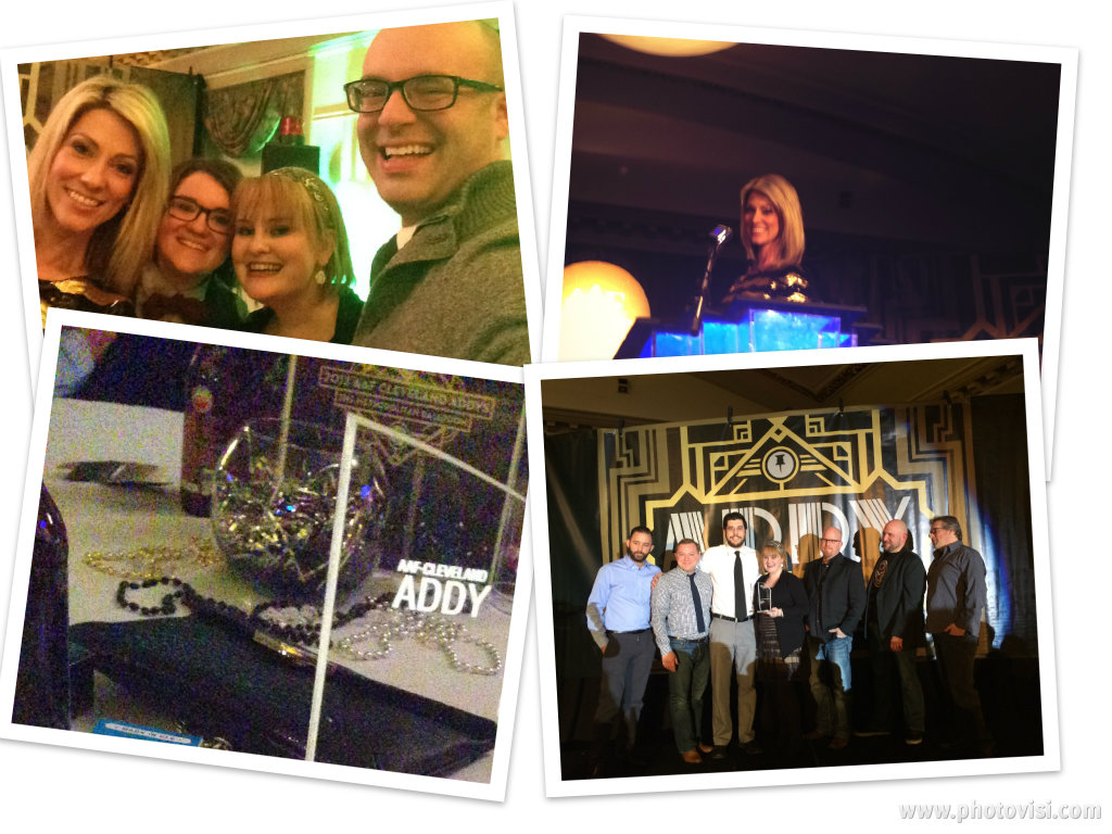 For starters it was the American Advertising Federation – Cleveland ADDY Awards. As co-chair my stress level was pretty high but we had an unbelievable group of volunteers who helped everything to go pretty seamlessly. Seriously – we were ahead of schedule at one point. And the night went off pretty flawlessly. Plus it was awesome to have our team win more than a few ADDYs (including a gold!)